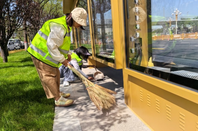 活動(dòng)自9月4日起為期六天,覆蓋迎澤大街(西段)全線,重點(diǎn)圍繞附屬設(shè)施清潔與道路精細(xì)化維護(hù)展開(kāi)?;顒?dòng)中,身著統(tǒng)一藍(lán)色“太原市政集團(tuán)”馬甲的志愿者們,手持長(zhǎng)柄擦洗器、水桶、抹布、鏟刀、掃帚等工具,對(duì)道路兩側(cè)公交站臺(tái)、路燈基地、護(hù)欄、照明燈桿等設(shè)施進(jìn)行系統(tǒng)清理與擦洗;同步推進(jìn)地磚灌縫精細(xì)化維護(hù)作業(yè),通過(guò)專(zhuān)業(yè)操作,確保每一條裂縫都“嚴(yán)絲合縫”,有效提升路面耐用性與通行舒適度,以實(shí)際行動(dòng)為市民出行安全與舒適保駕護(hù)航;同時(shí),志愿者專(zhuān)門(mén)對(duì)道路沿線的石頭字景觀展開(kāi)描金作業(yè),細(xì)刷蘸取金色涂料,一筆一畫(huà)精心描摹,成為主干道上一道兼具文化氣息與視覺(jué)美感的獨(dú)特風(fēng)景。
