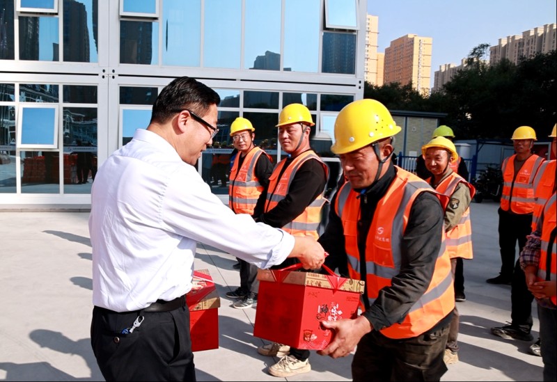 活動中,市總工會領(lǐng)導(dǎo)與一線施工人員進行了親切交談,仔細詢問項目進展和員工生活保障情況,并為大家送來了月餅、豬肉等慰問品。